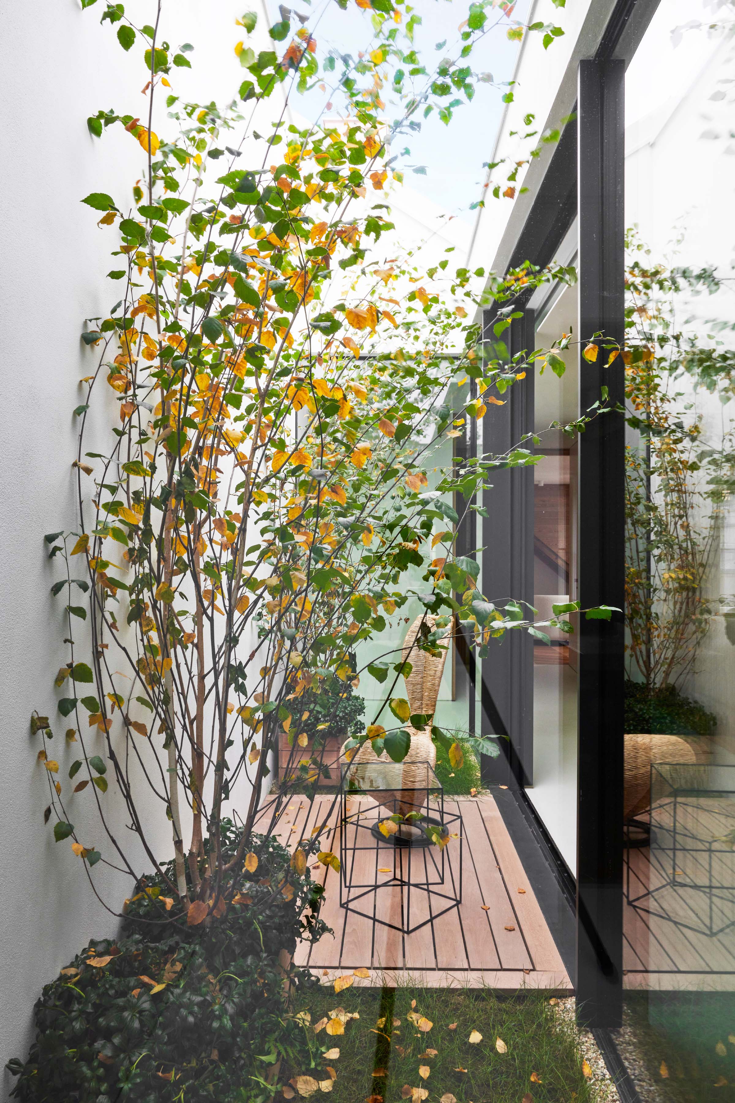 The existing apartment in a classicist corner house in Prague built in 1837 by an architect Jan Ripota, which is a listed building, has undergone a complete reconstruction. The reconstruction of the apartment included its extension into the roof space and the creation of a new roof dormer located in the courtyard of the house. The renovation also included the implementation of an outdoor atrium, which offers outdoor seating in peace and adds natural light to the apartment space.